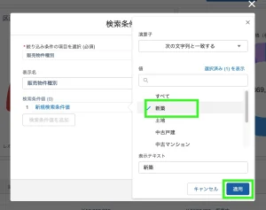 (3)絞り込み条件の項目(今回では「販売物件種別」)を選択します。