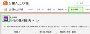 「取引先責任者」オブジェクトの名称は各社異なりますが、紫の名刺アイコンが「取引先責任者」オブジェクトになります。